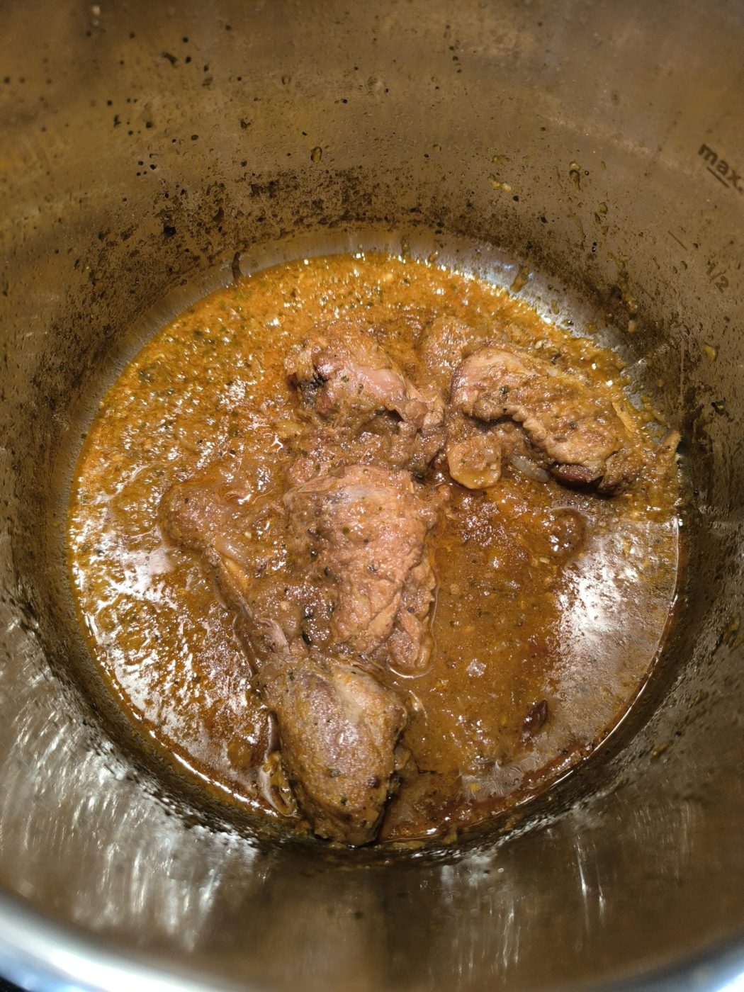 Włóż obsmażone mięso z powrotem do szybkowaru, wlej gorący bulion i dokładnie wymieszaj, zeskrobując wszystko z dna. Zamknij szybkowar i gotuj, licząc czas od momentu osiągnięcia pełnego ciśnienia, przez około 15 minut, po czym pozwól, aby ciśnienie zeszło naturalnie.