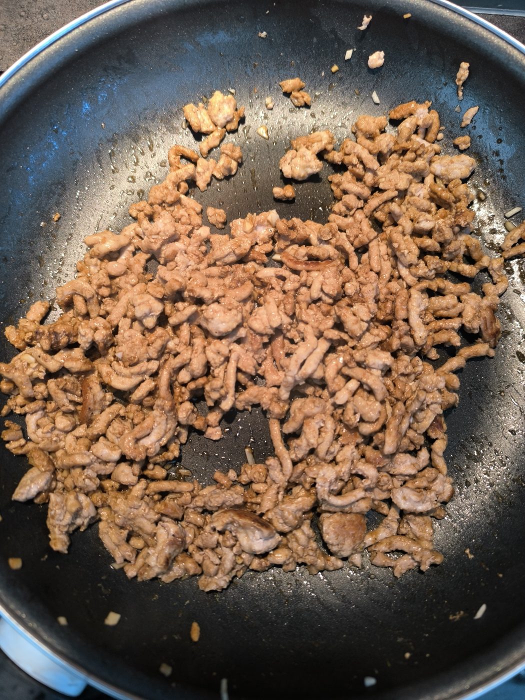 Takie podejście daje znacznie więcej reakcji Maillarda i głębszy smak. Dopiero na końcu mięso rozbija się łopatką na mniejsze kawałki. To szybka metoda, by uzyskać maksymalną ilość karmelizacji bez przesuszania.
