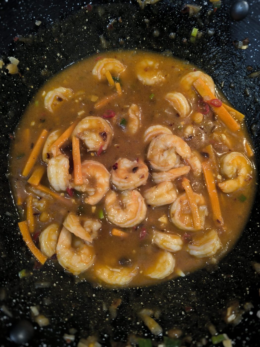 Dlatego krewetki po syczuańsku są krótko smażone, często „wykańczane” bulionem lub wodą, tak aby zachować sprężystość i świeżość.