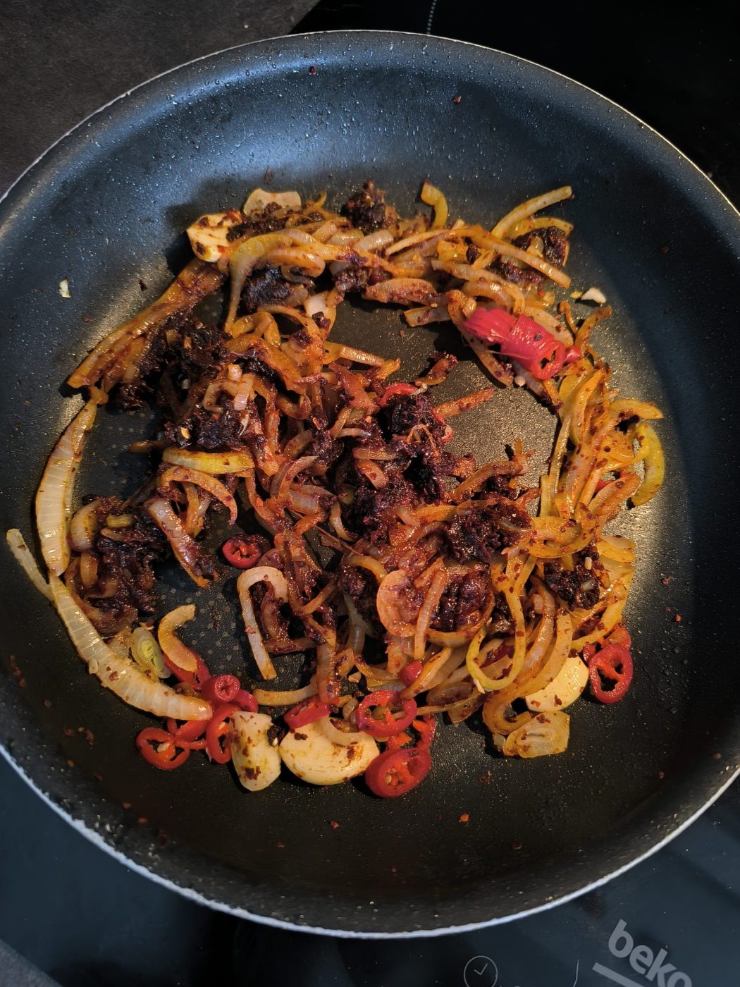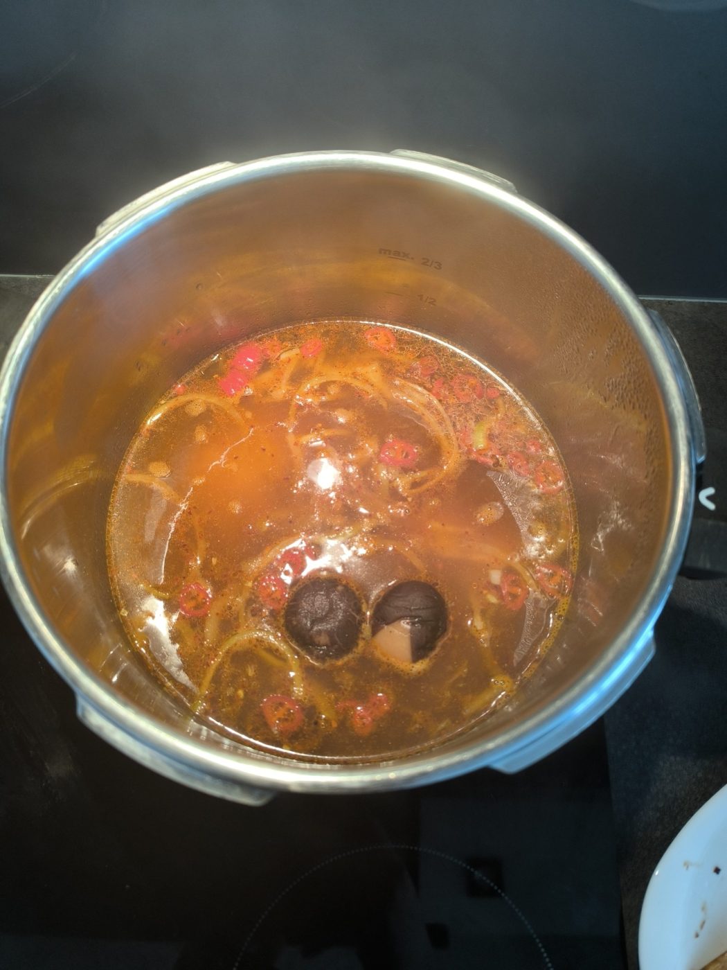 - Uważaj na ostrość: gochugaru + gochujang + chili to naprawdę wybuchowa mieszanka, w sam raz na bardzo chłodne zimowe wieczory. Ale dla mniej „ostrolubnych” proponuję zacząć od mniejszej ilości gochugaru i być może odpuszczenia sobie papryczki chili.