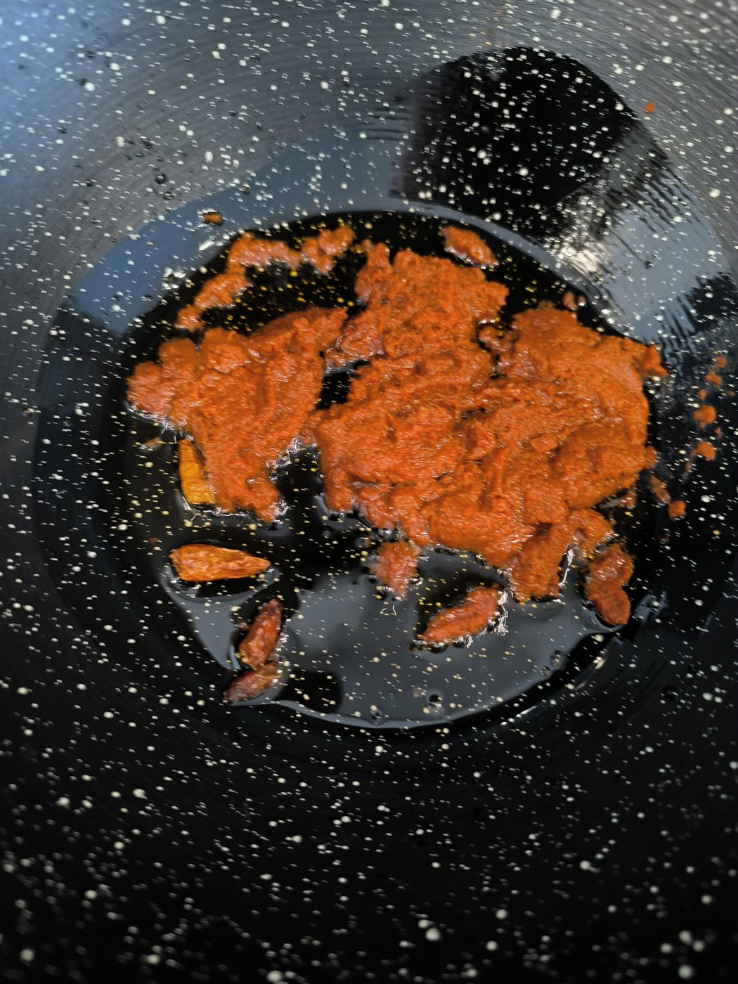 Liczy się technika: pasta musi być dobrze podsmażona na oleju, aż zacznie oddzielać się tłuszcz i uwalniać aromat. Dopiero wtedy staje się nośnikiem smaku, a nie surową masą przypraw.