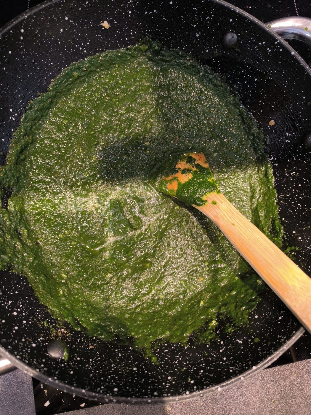Przy daniach typu palak kolor naprawdę ma znaczenie. Szpinak bardzo łatwo przechodzi z przyjemnej, świeżej zieleni w przygaszony oliwkowy odcień, jeśli zostanie potraktowany zbyt długo albo zbyt agresywnie. Krótkie blanszowanie pozwala ten problem ograniczyć. Wrzucenie liści na chwilę do wrzątku, a potem natychmiastowe schłodzenie ich w lodowatej wodzie zatrzymuje proces dalszego gotowania i pomaga zachować lepszy kolor.