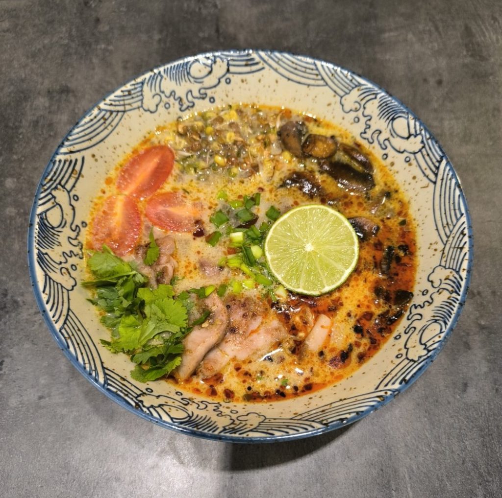 Tom Kha to zupa oparta na kontraście i aromacie, a nie na wygładzaniu smaku. Jej charakter wynika z zestawienia kwaśności, ostrości, tłuszczu i intensywnych ziół, które nie są równoważone, lecz współistnieją. Jeśli galangal, liście kaffiru i mleko kokosowe spotkają się w odpowiednich proporcjach, zupa natychmiast ujawnia swój profil — wyrazisty, złożony i trudny do pomylenia z czymkolwiek innym.