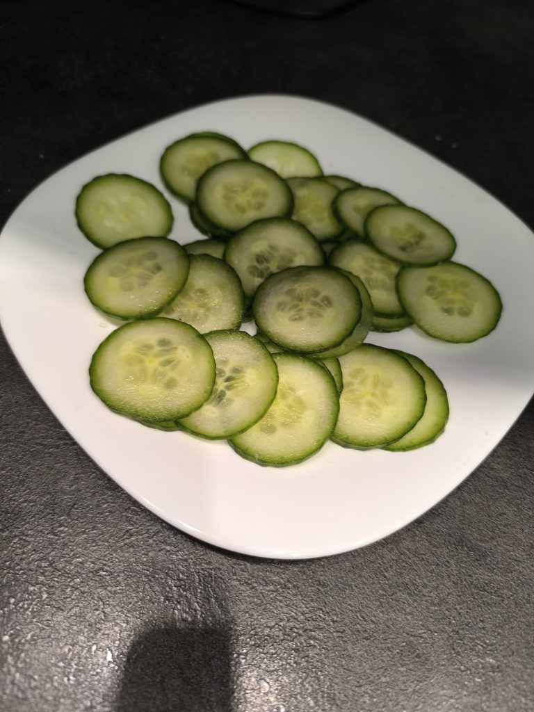 - 1/2 ogórek szklarniowy, pokrojony w cienkie plasterki