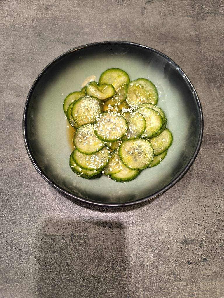 Sunomono (酢の物) to niesamowicie prosty dodatek, można pomyśleć, że to tylko ogórek pokrojony w plasterki, ale w praktyce robi dokładnie to, co powinien robić świetny dodatek: odświeża, czyści podniebienie i daje kontrast do cięższych dań. To sałatka w occie (su = ocet), najczęściej z ogórka, czasem z dodatkiem wodorostów wakame, kraba/surimi albo cienkich nitek marchewki. Minimalizm w czystej formie – proste niczym drzewiec naginaty!